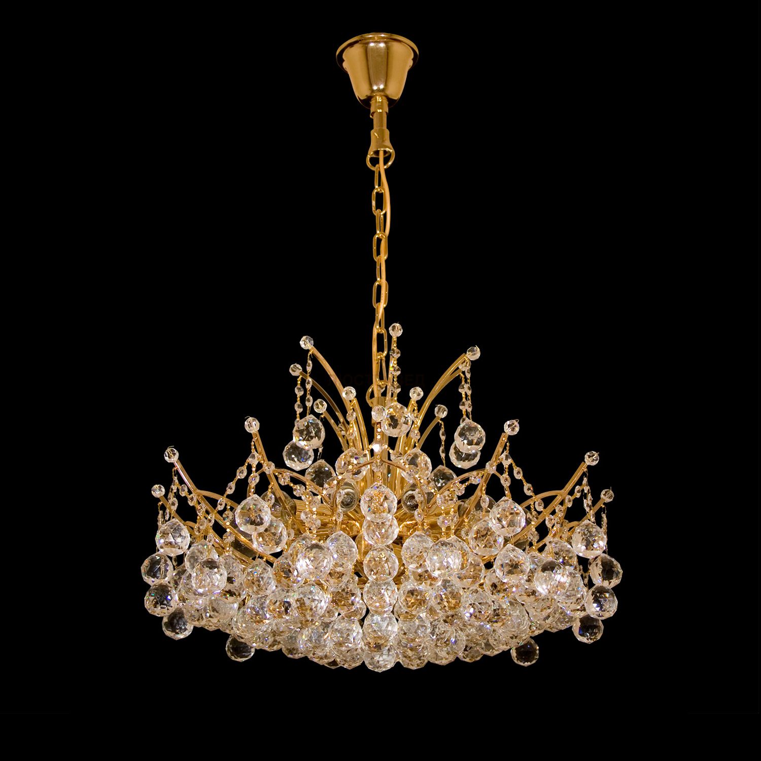 Металлическое основание цвета золота, декоративные хрустальные подвески