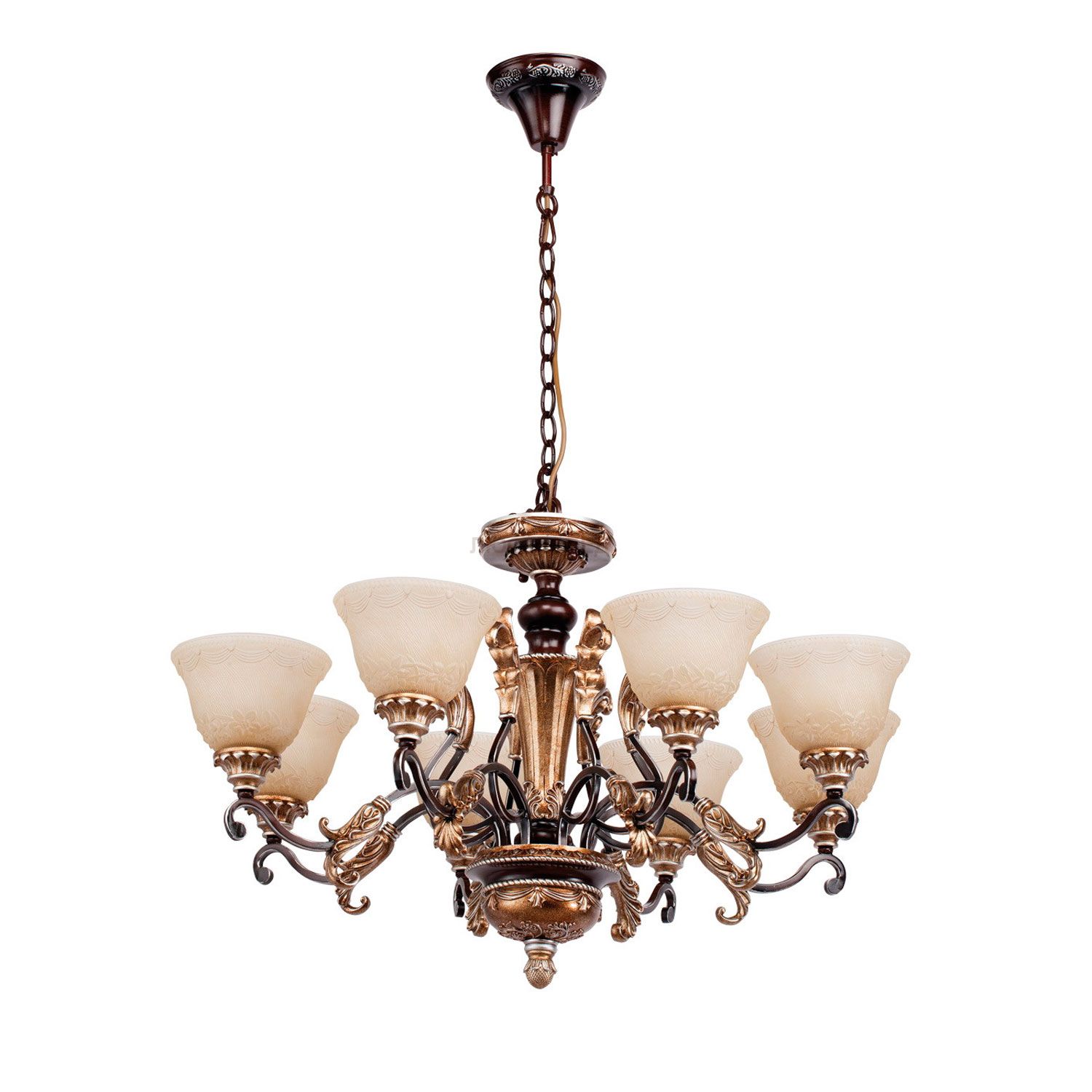 Благородный дизайн, выполненный в лучших традициях стиля Кантри. Оригинальный цвет арматуры светильника - цвет состаренной бронзы. Надежный, качественный плафон. Высокое качество исполнения. Мягкое распределение светового потока. Широкая семья – есть возможность комплексного освещения пространства. В «семье» представлены потолочные и подвесные люстры, бра, настольная лампа, торшер.