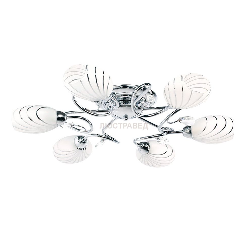 Современный дизайн объединяет в себе популярную форму плафонов и оригинальные завитки арматуры. Универсальность модели – легко впишется практически в любой интерьер. Высокие параметры освещенности за счет светлых плафонов и их оптимального размещения по всему диаметру светильника. Качественное гальваническое покрытие арматуры цвета хрома. Демократичная цена. Хороший вариант для комнат со стандартными потолками.