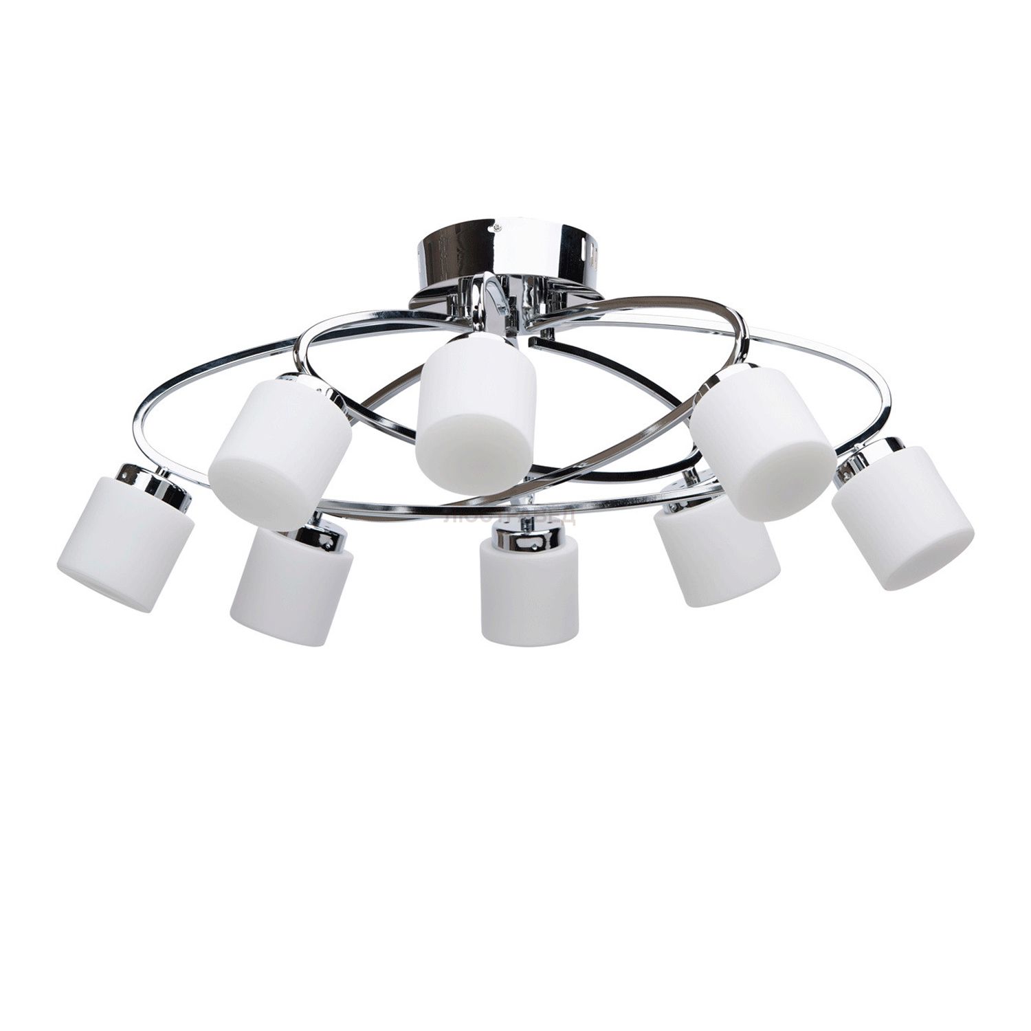 Металлическое основание цвета хрома, плафоны из белого матового стекла