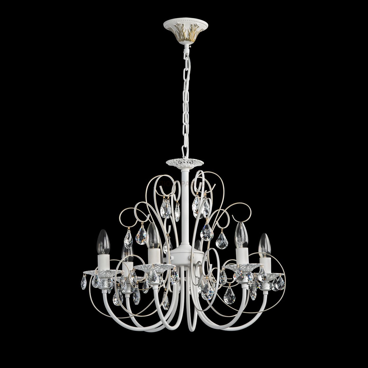 Крашеное металическое основание в белый матовый цвет, декоративные элементы из хрусталя