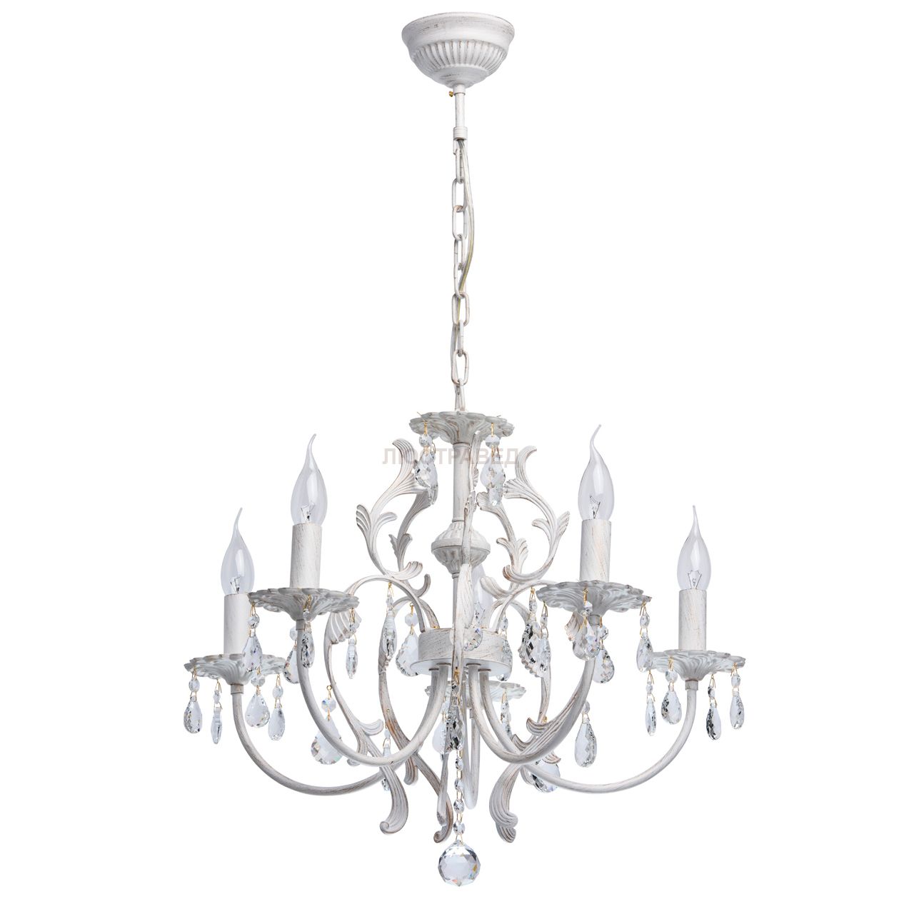 Крашеное металлическое основание белого цвета с золотистыми проблесками, декор - хрусталь