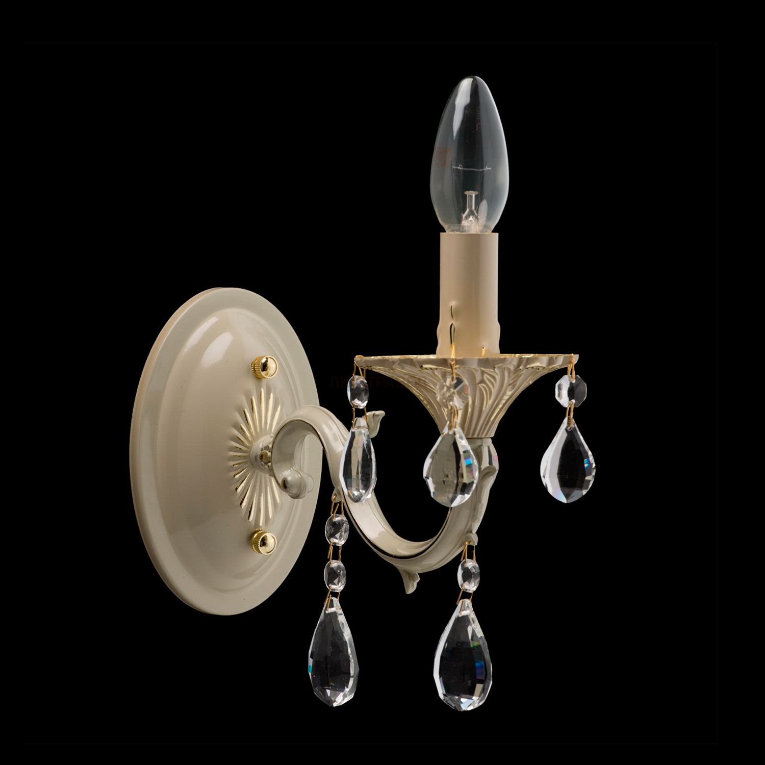 Крашеное металлическое основание цвета слоновой кости с фисташковым оттенком, декоративные подвески из хрусталя