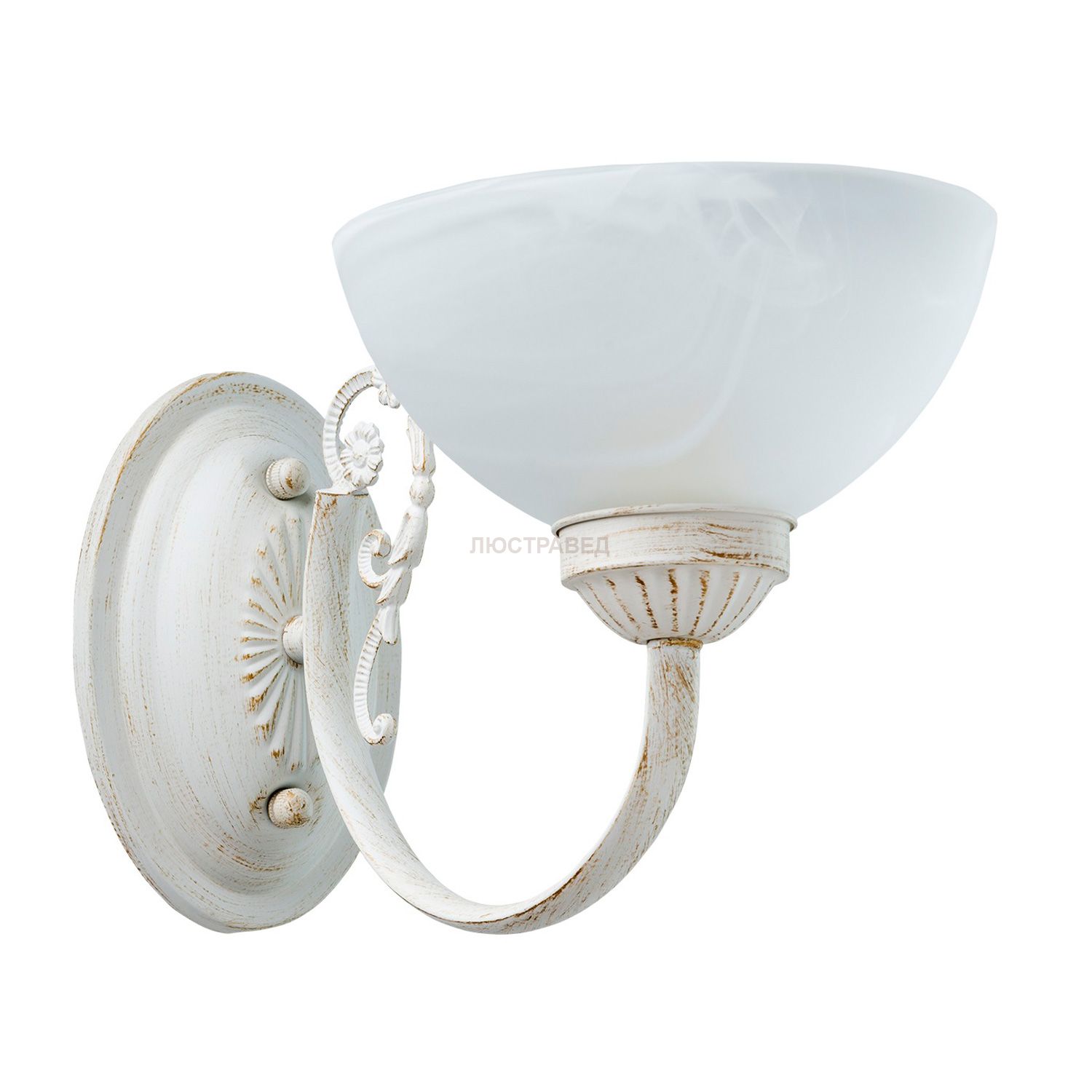 Крашеное металлическое основание цвета слоновой кости с золотой патиной, плафон из матового стекла