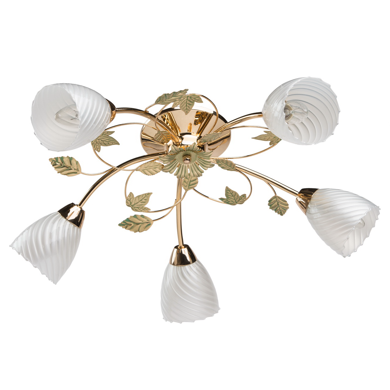 Металлическое основание цвета золота, стеклянные матовые плафоны с перламутром