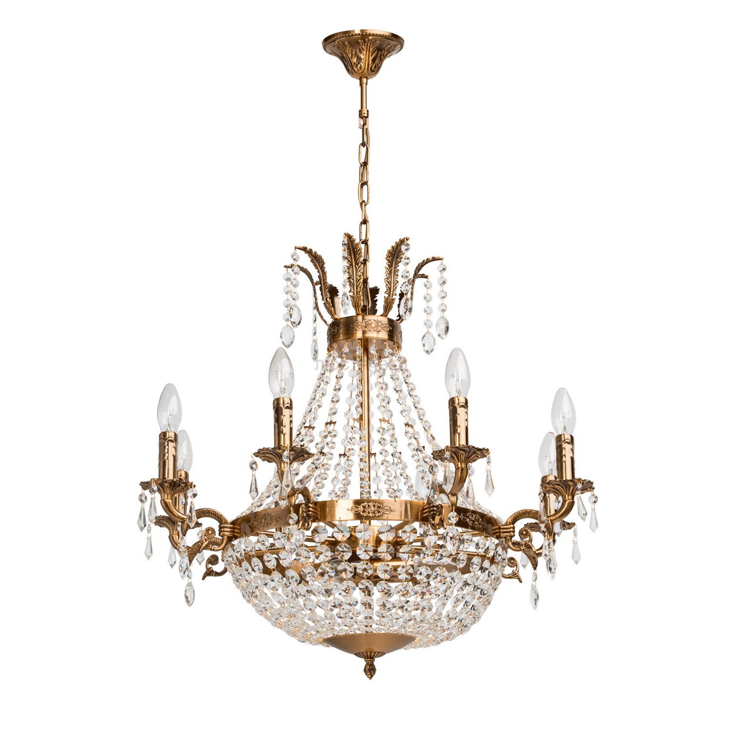 Металлическое основание цвета бронзы, декоративные подвески из хрусталя.