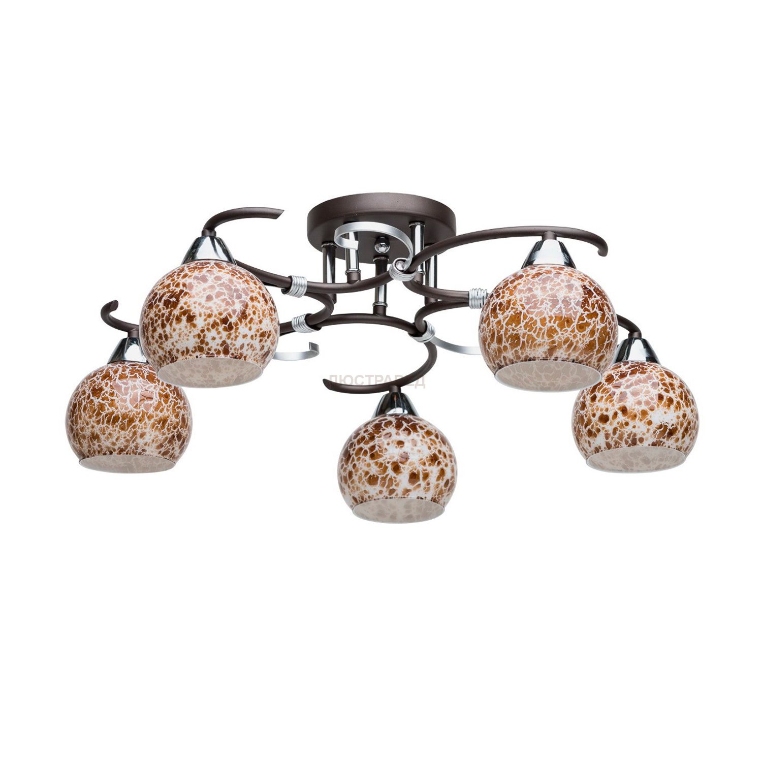 Крашеное металлическое основание цвета кофе и серебра, стеклянные плафоны