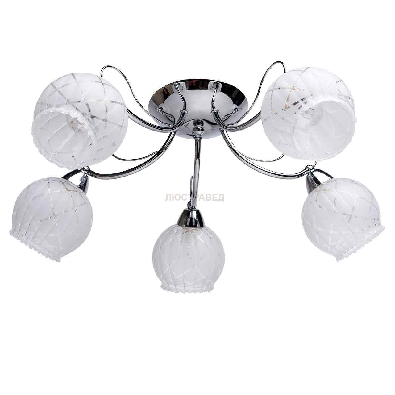 Металлическое основание цвета хрома, стеклянные плафоны с геометрическим рисунком