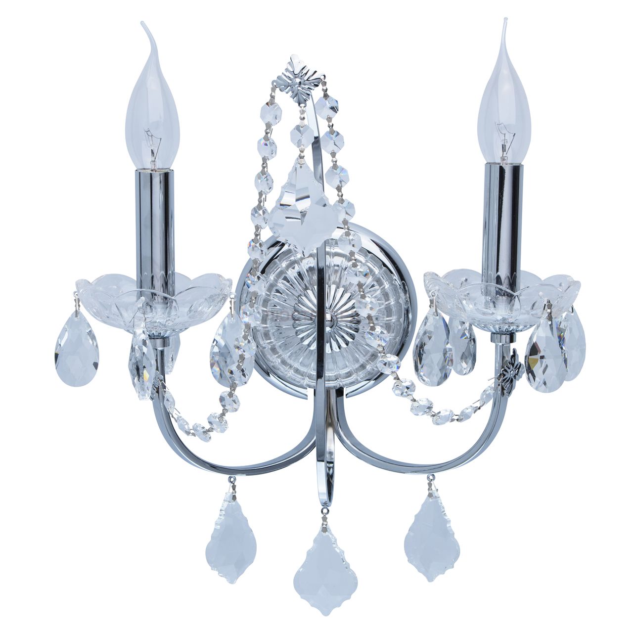 Основание из металла цвета хрома, декоративные элементы из стекла и хрусталя