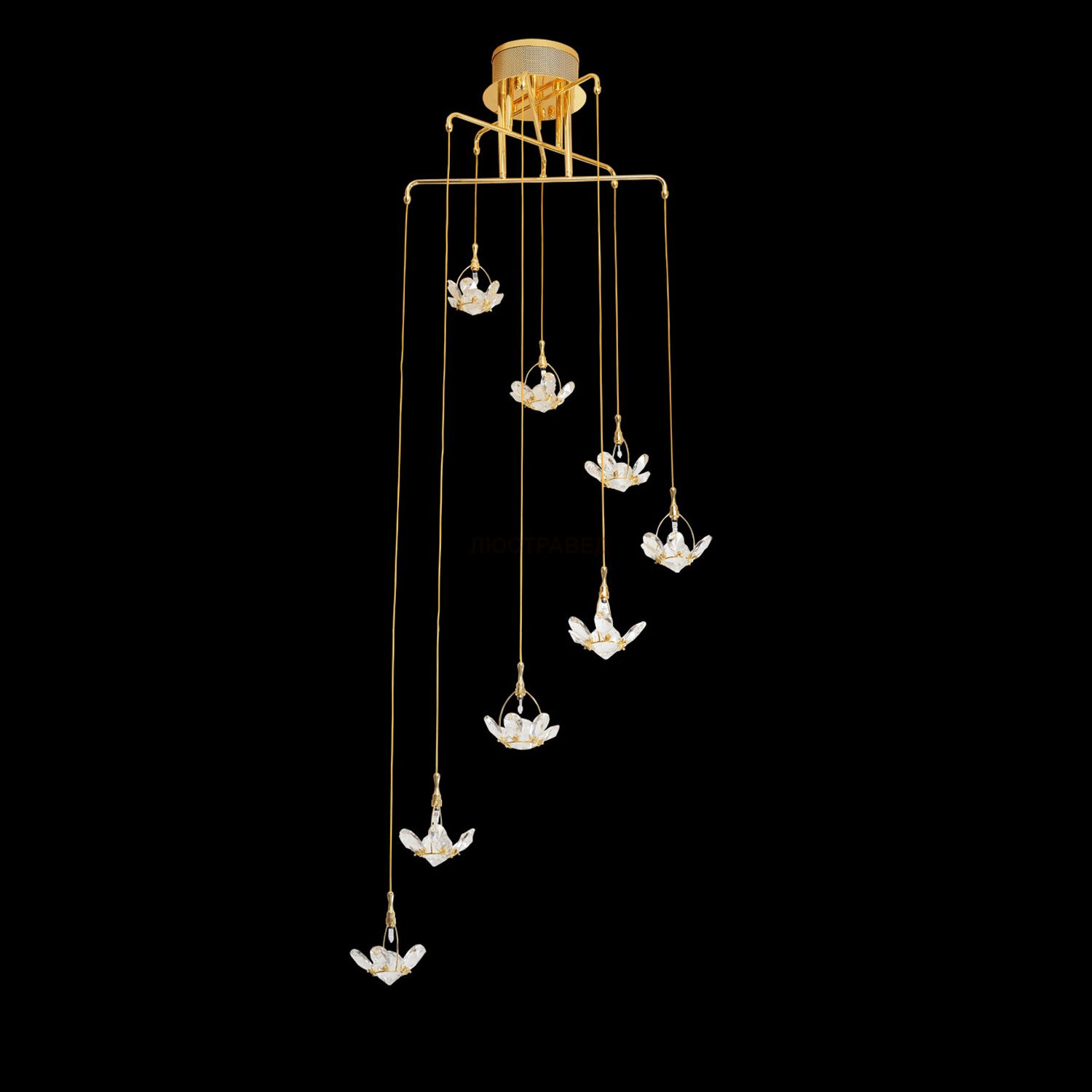 Металлическое основание цвета золота, хрусталь.