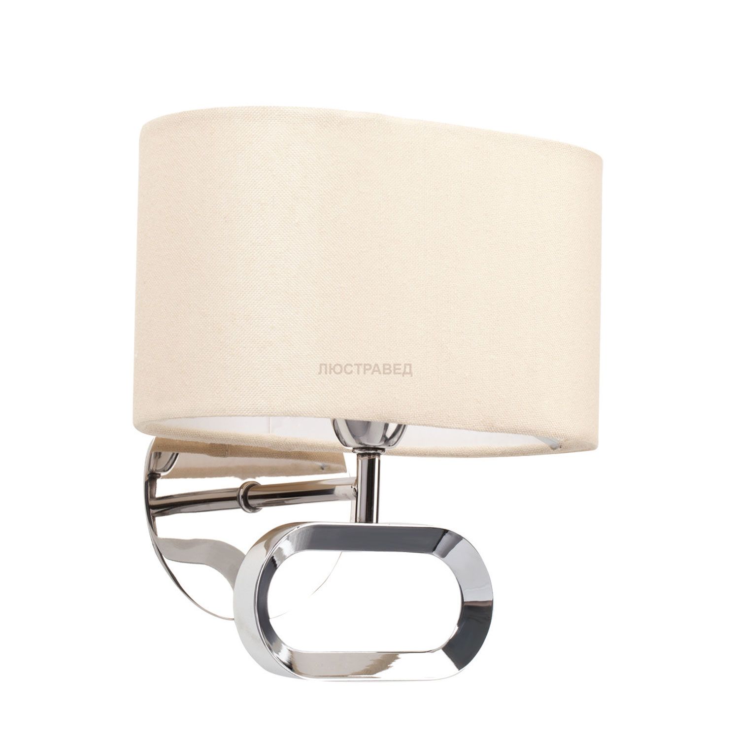 Металлическое основание цвета хрома, текстильный абажур.