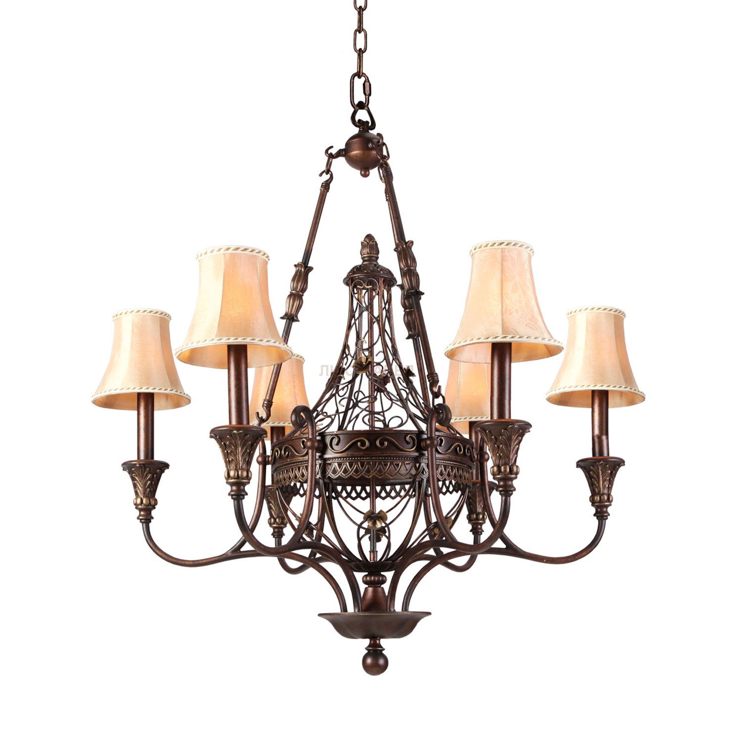 Кованое металлическое основание, текстильные абажуры