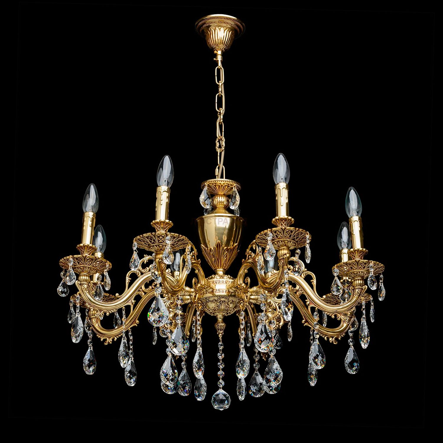 Основание из полированной латуни с патиной цвета меди, декоративные подвески из хрусталя
