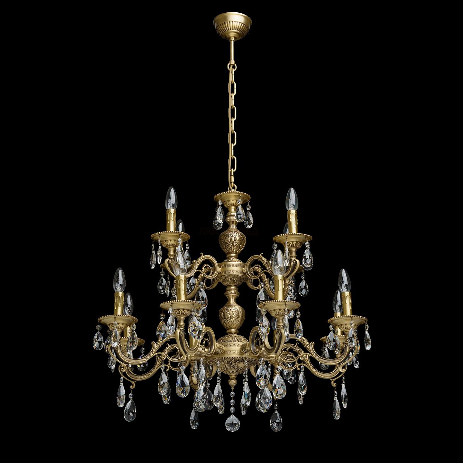 Арматура из благородного сплава – латуни. Использована техника художественного литья с последующим патинированием вручную. Четыре вида хрусталя по форме и размерам кристаллов ТМ F&D crystal премиального качества.