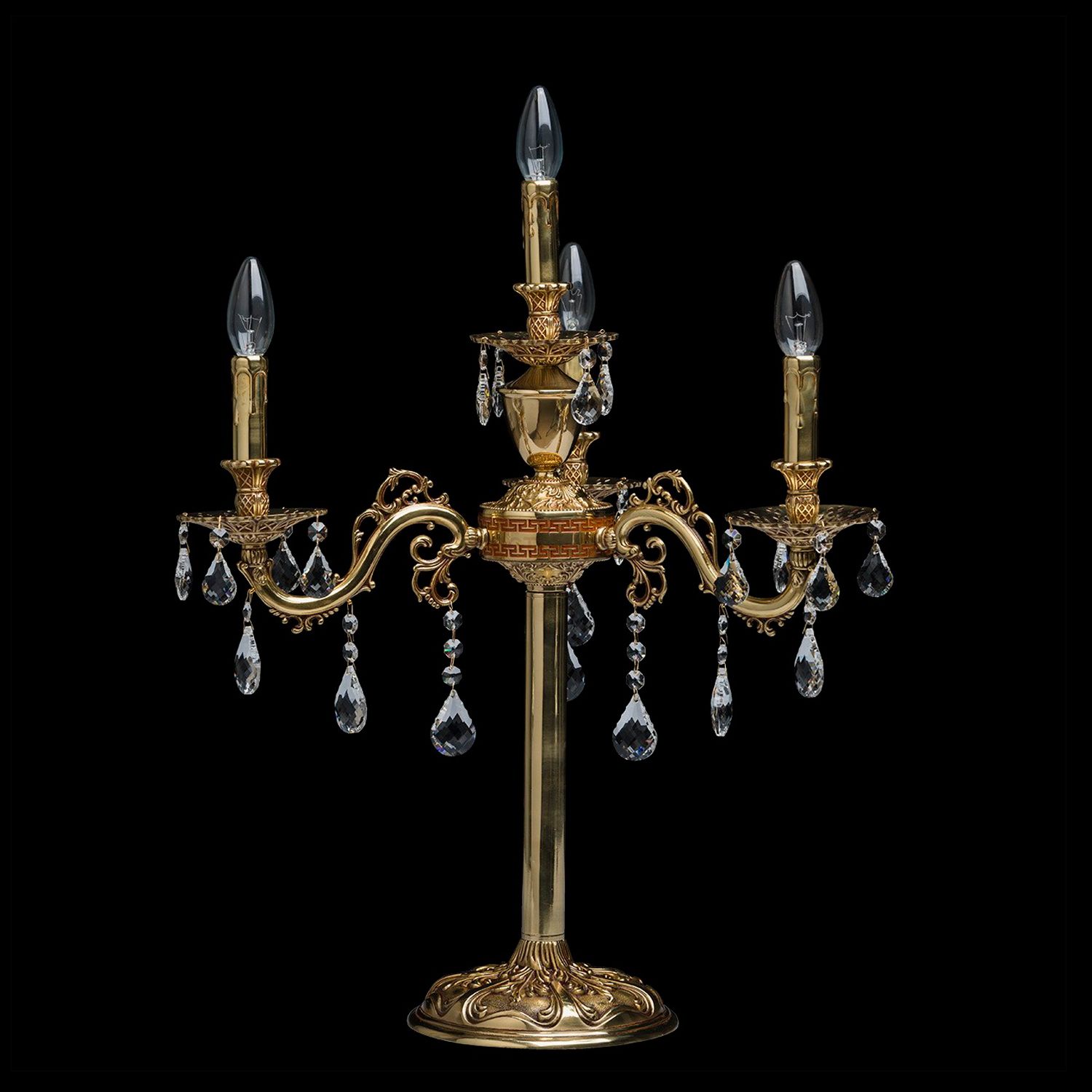 Основание из полированной латуни с патиной цвета меди, декоративные подвески из хрусталя