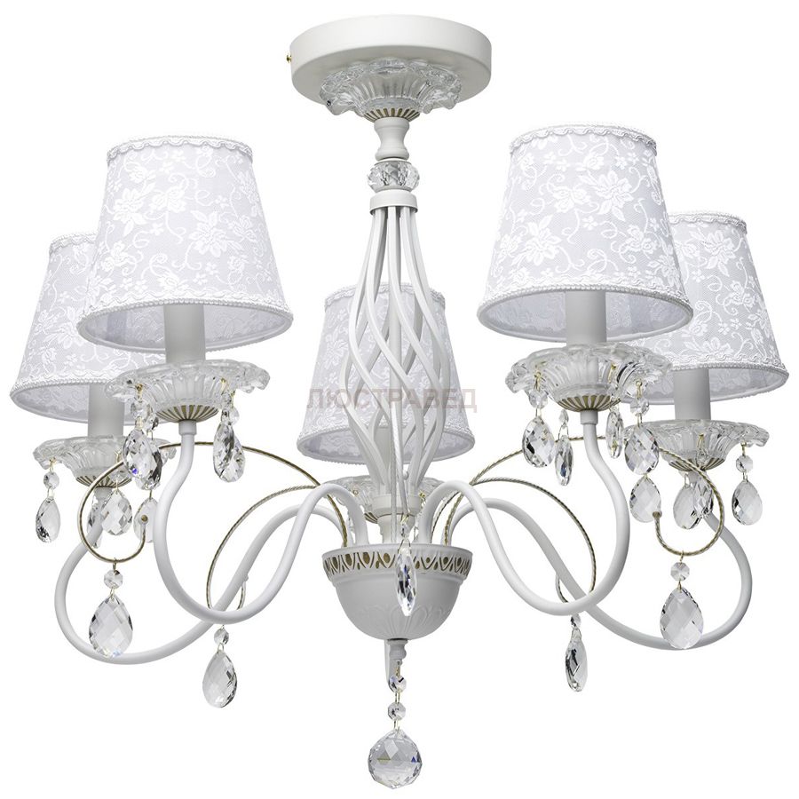 Металлическое основание белого цвета с золотистой патиной, абажуры из кружева и ПВХ, декоративные элементы из стекла и хрусталя “A Grade “