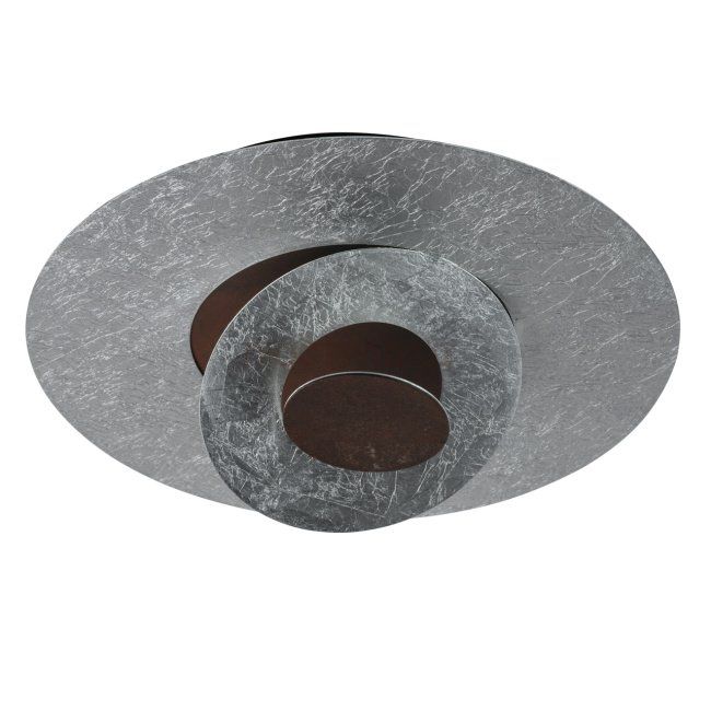 Основание выполнено из металла и обработано по технологии поталь в цвет серебра. Декоративный элемент также выполнен из металла и обработан по технологии многослойного окрашивания в цвет естественной ржавчины. Светодиодные источники света типа SMD Stripe.