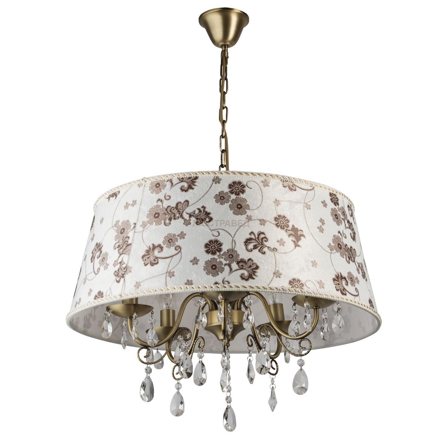Металлическое основание цвета бронзы, текстильные абажуры подвески из хрусталя