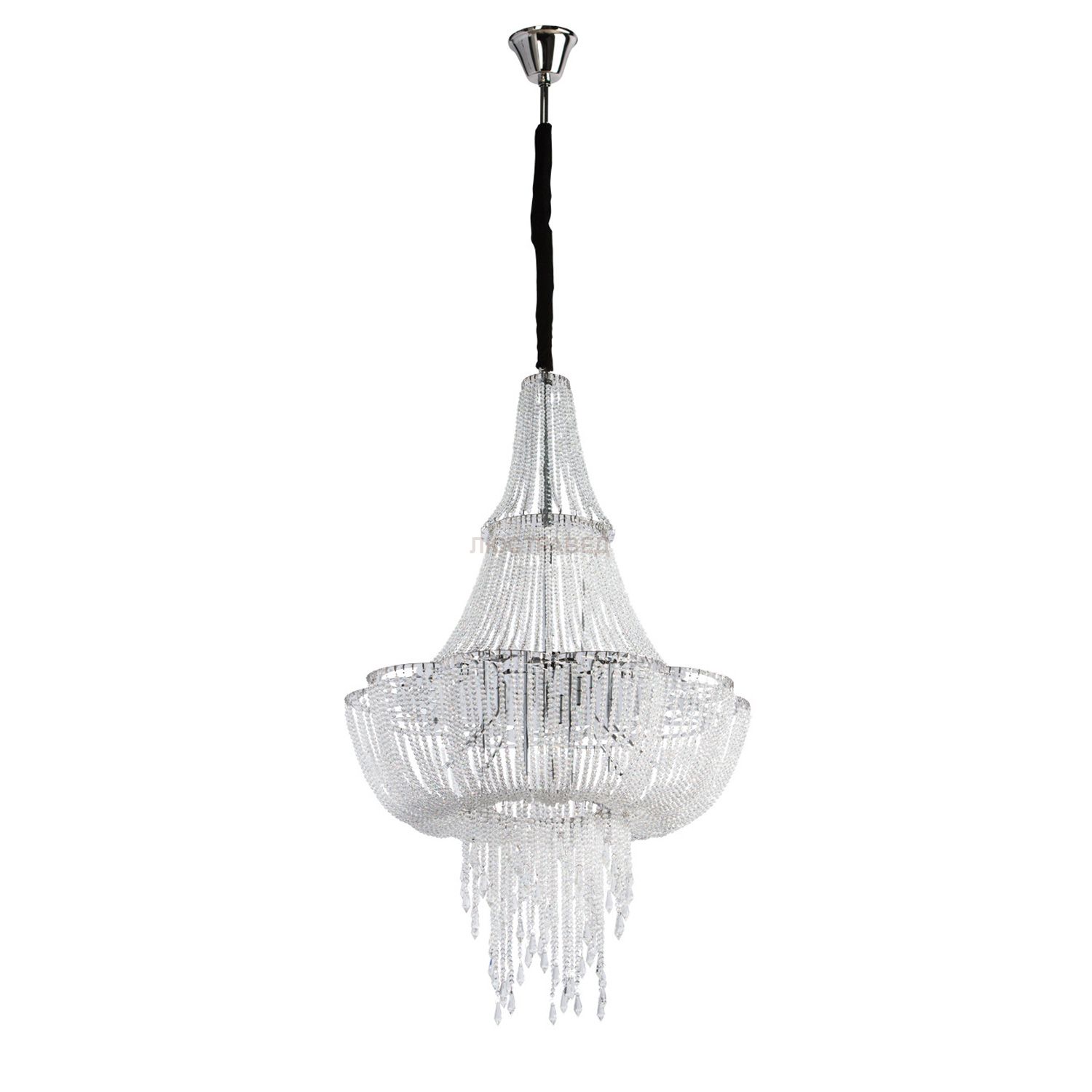 Металлическое основание цвета хрома, декоративные подвески из высококачественного хрусталя.