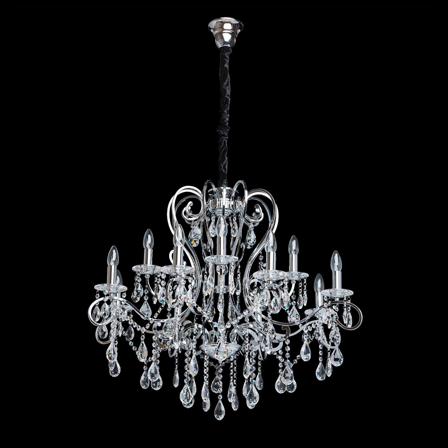 Металлическое основание цвета хрома, декоративные подвески из хрусталя
