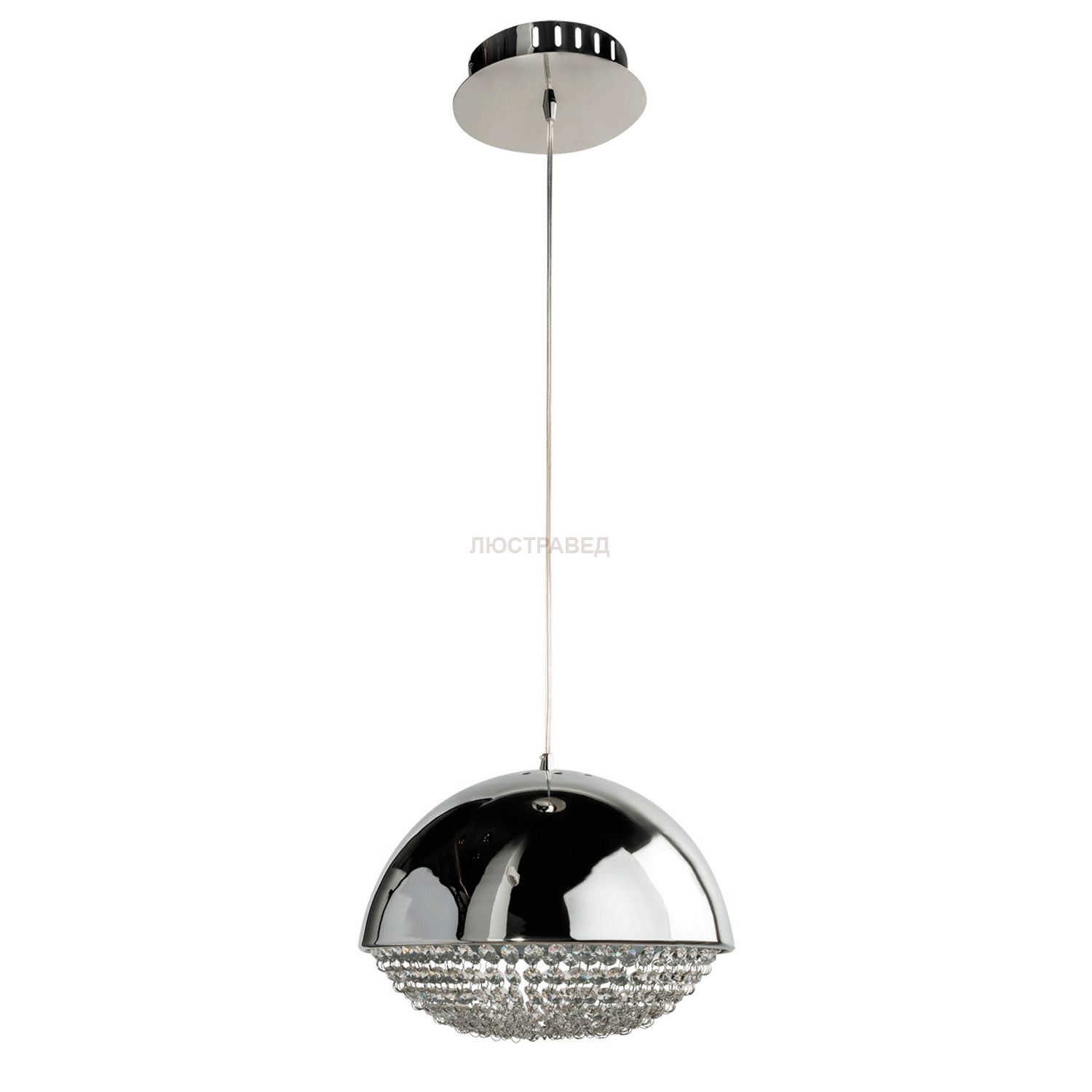 Металлическое основание цвета хрома, декоративные подвески из хрусталя.