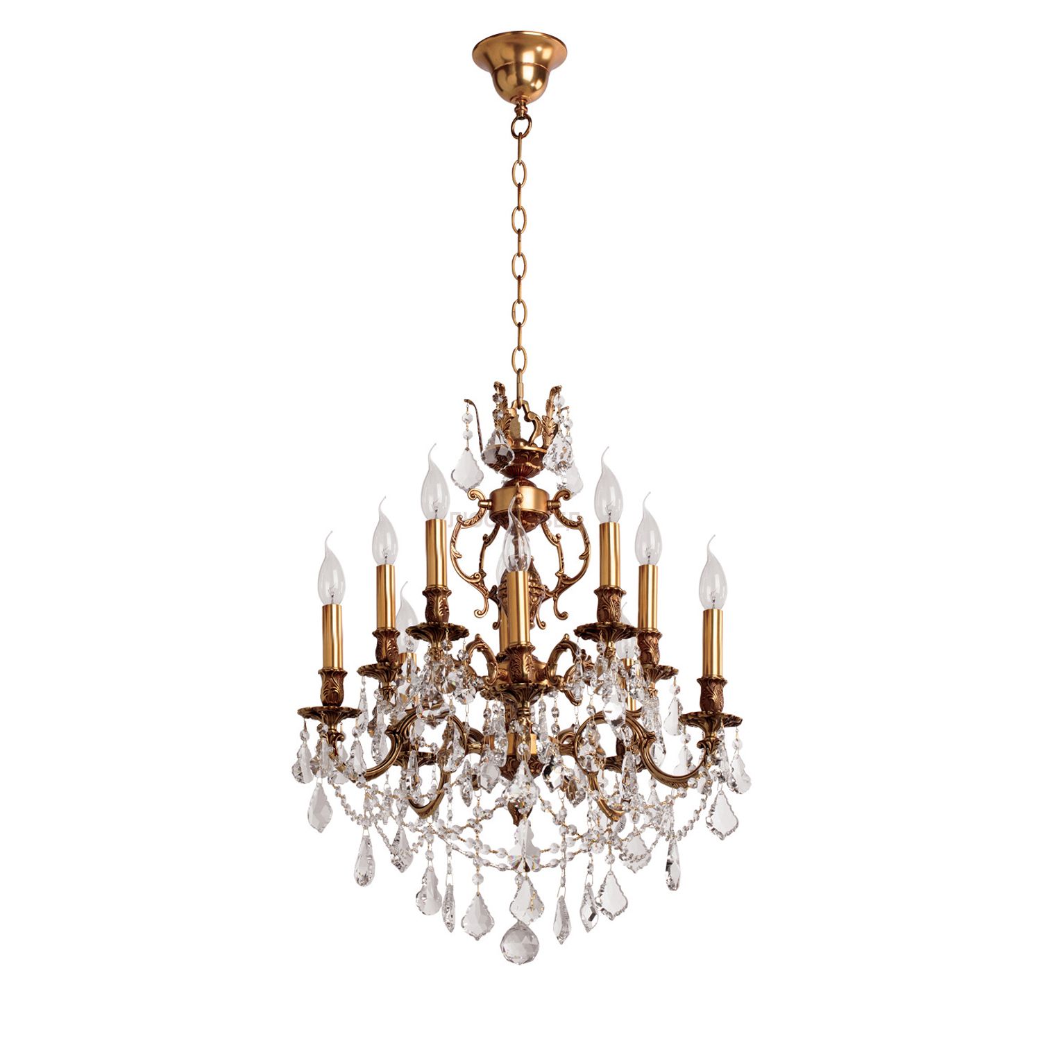 Металлическое основание цвета червлёного золота, декоративные подвески из прозрачного хрусталя.