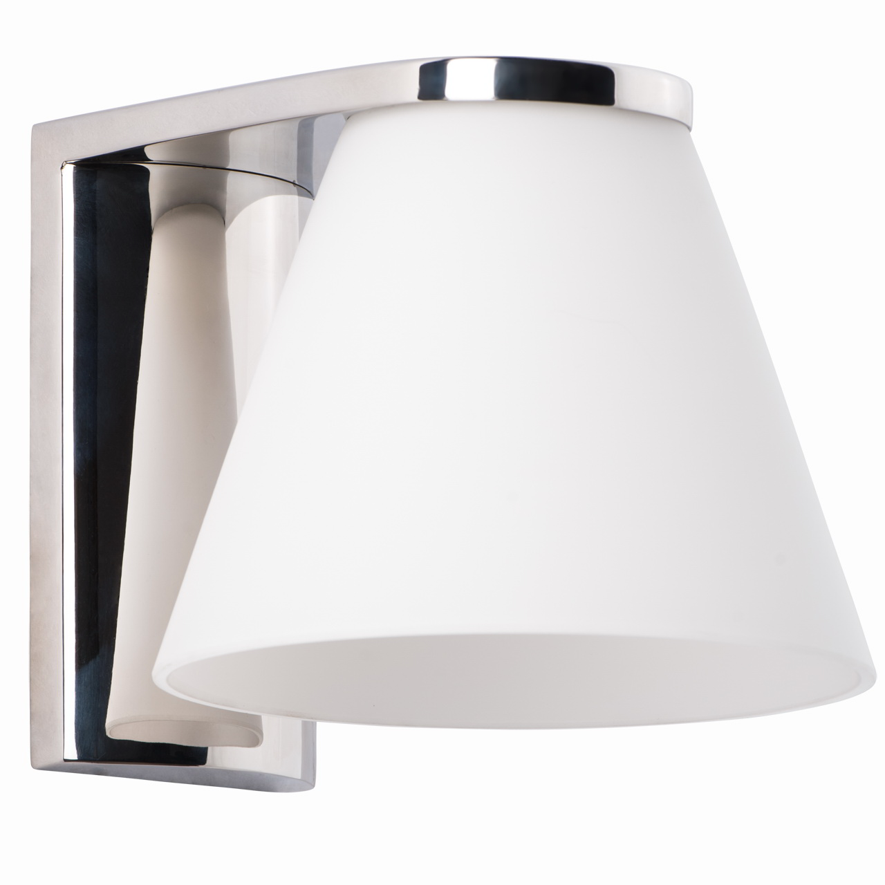 Металлическое основание цвета хрома, плафон из матового стекла.