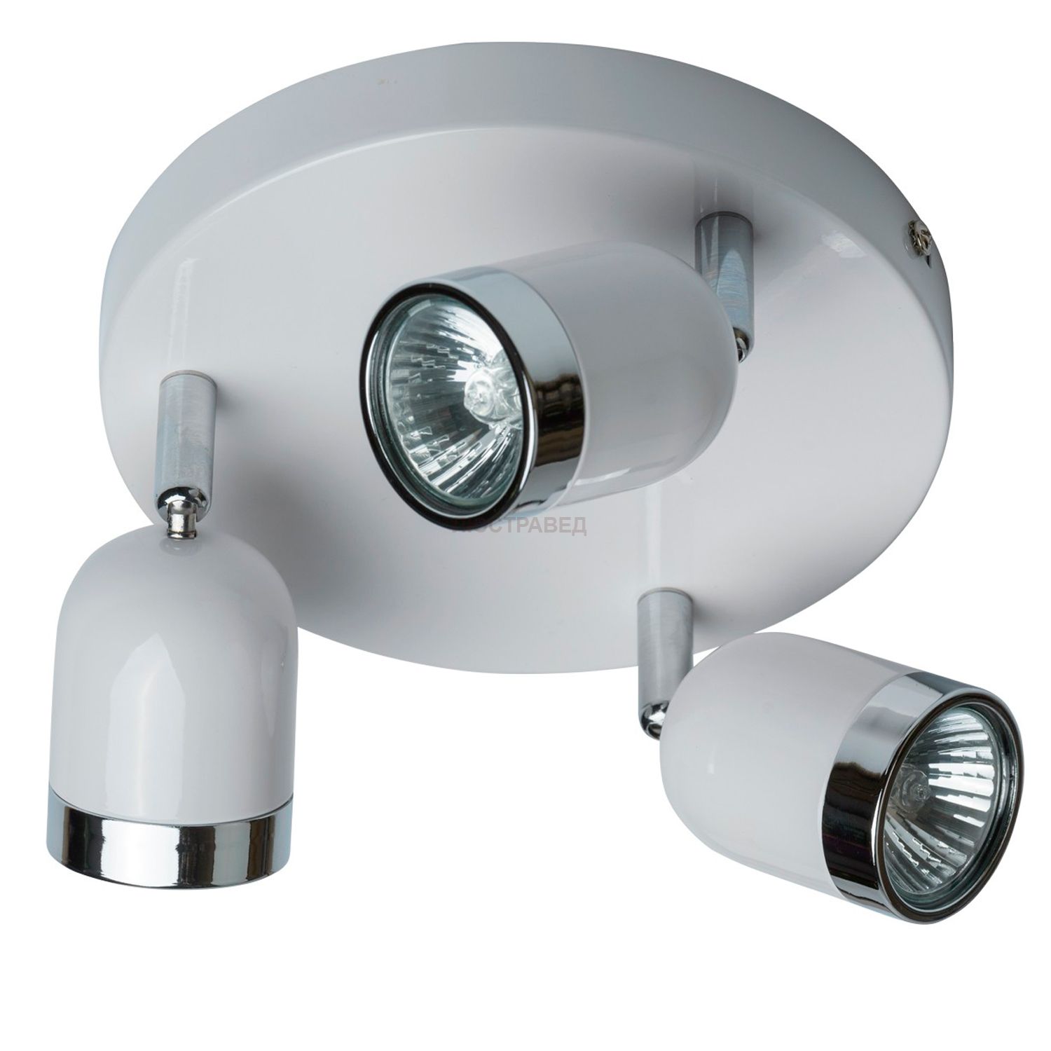 Арматура светильника выполнена из сплава металла и окрашена белой эмалью. Белый цвет выгодно подчеркивают элементы, гальванизированные в цвет хрома. Плафоны на шарнирах. Лампочки входят в комплект.