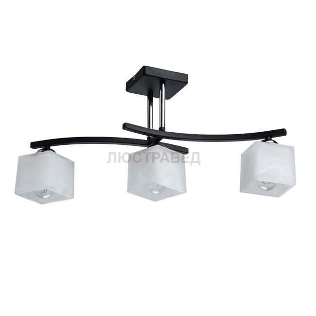 Крашеное металлическое основание черного цвета, декоративные элементы цвета хрома, плафоны из стекла