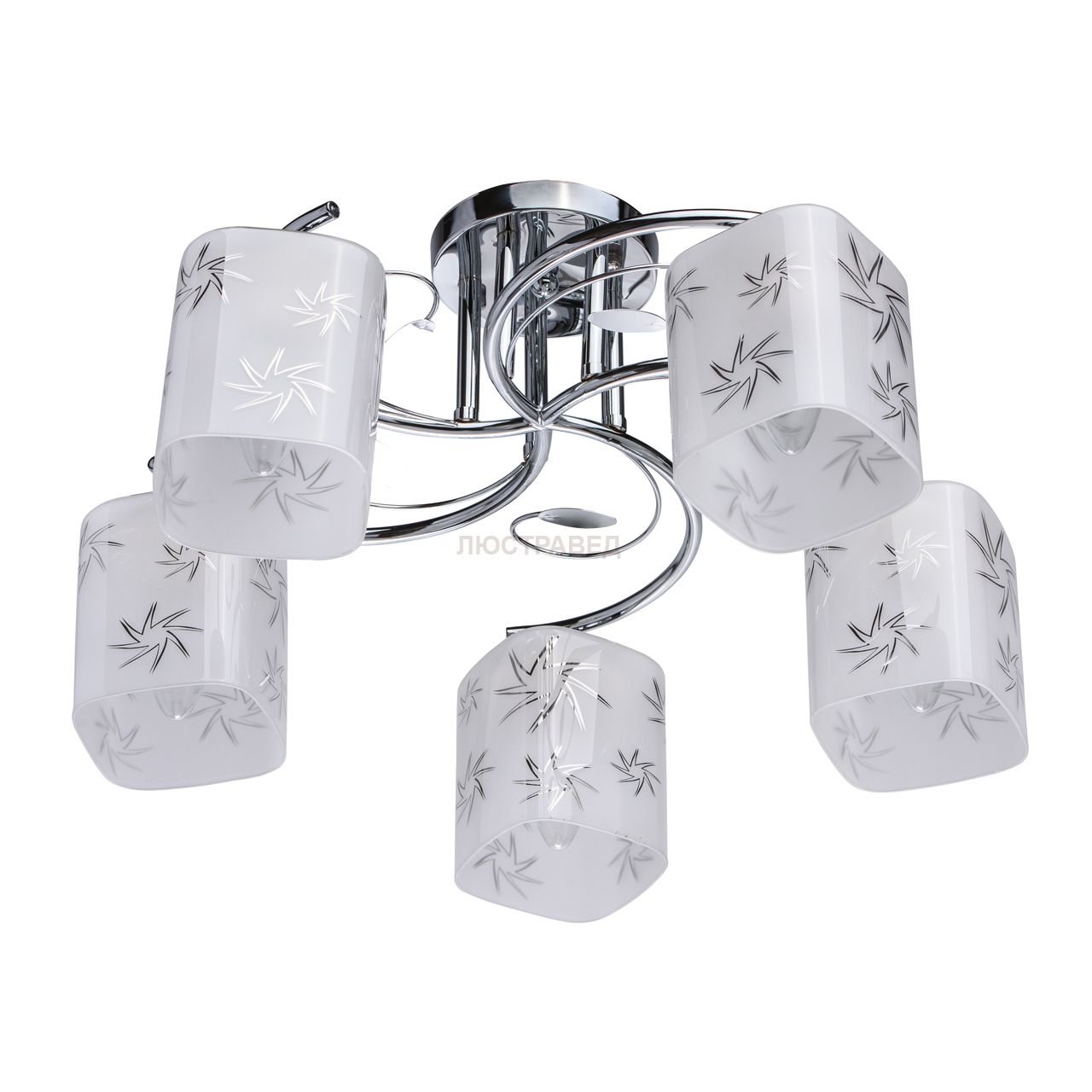 Основание из нержавеющей стали. Плафоны: матовое белое стекло с рисунком.