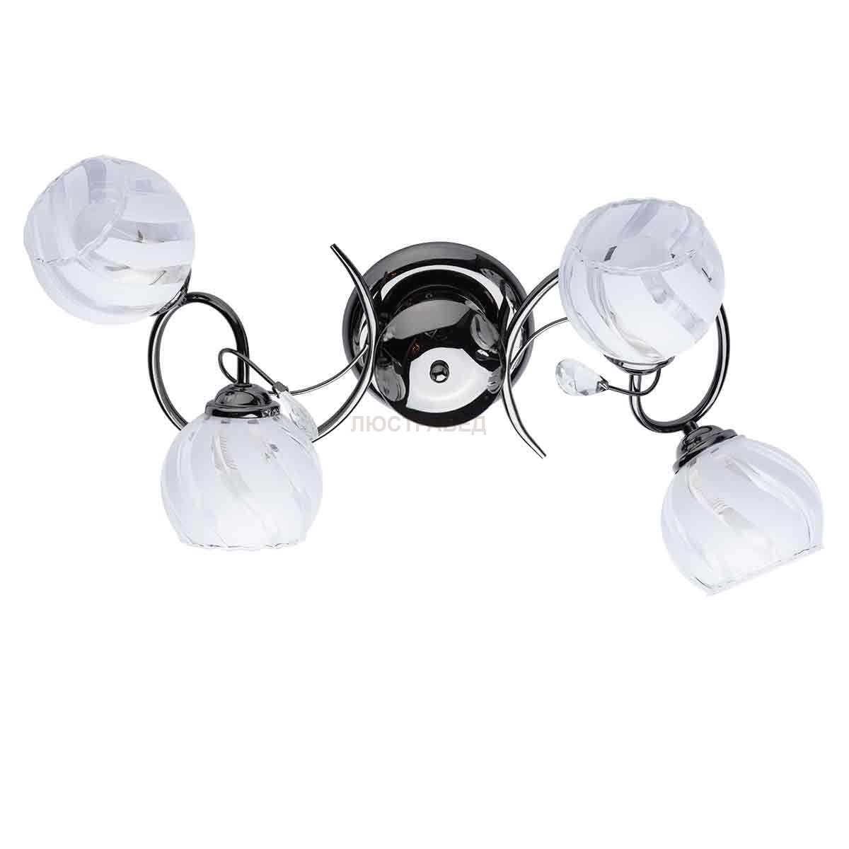 Металлическое основание цвета никеля, плафоны и декоративные элементы из стекла