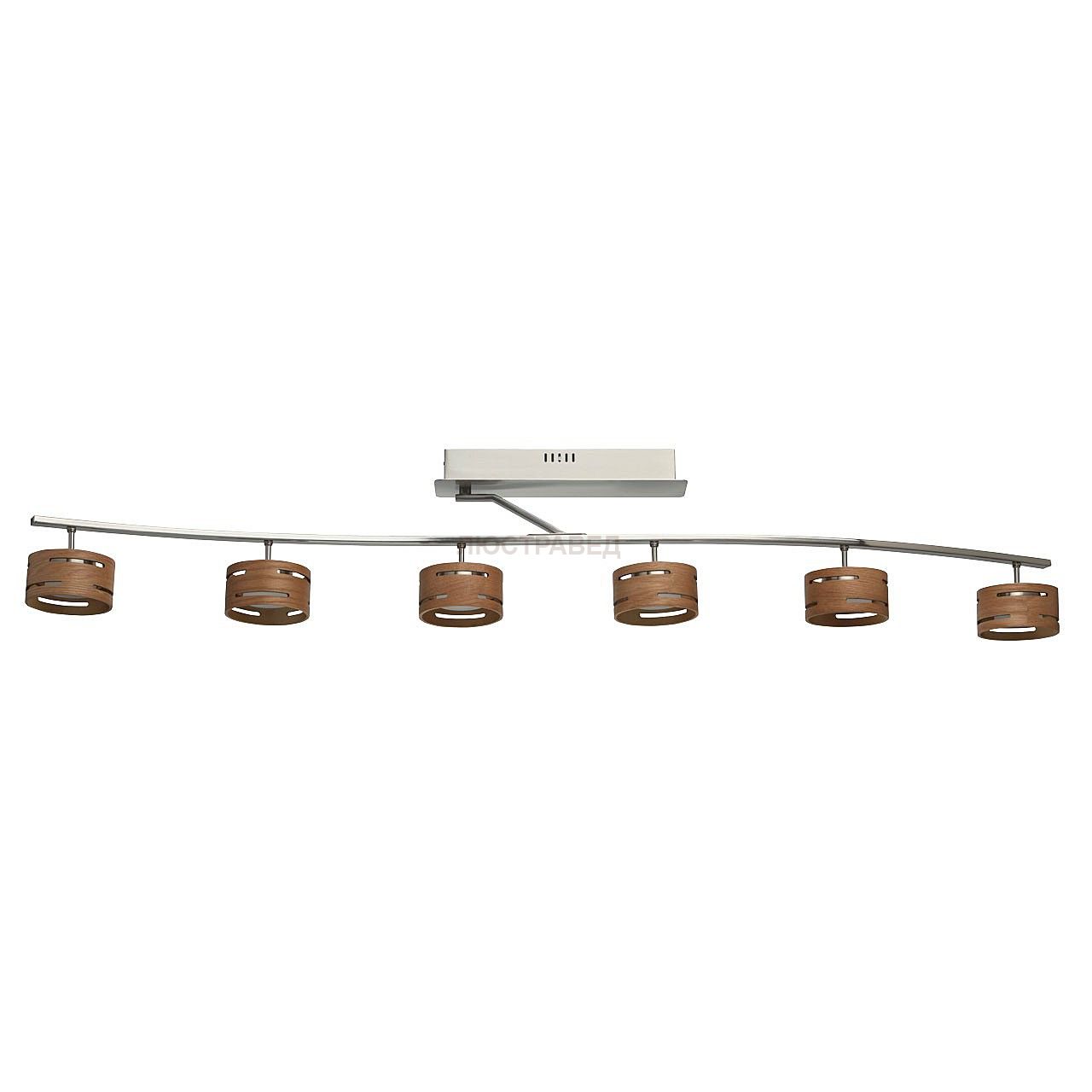 Металлическое основание цвета матового никеля. Плафоны: натуральное дерево, акрил.
