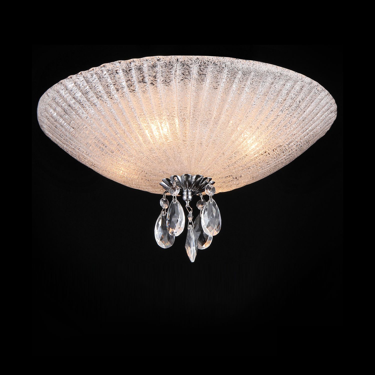 Каркас из металла. Плафон из стекла. Подвески из *хрусталя.