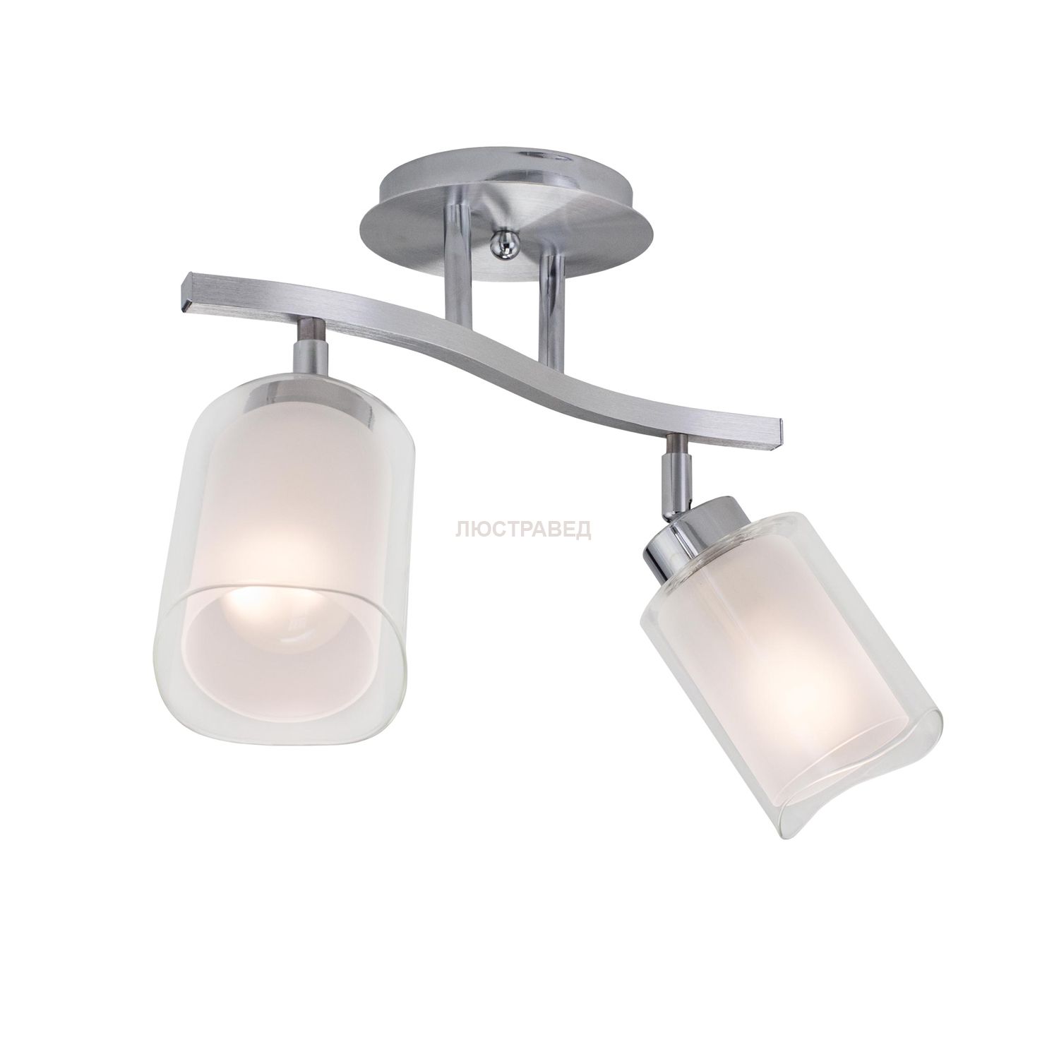 Длина 37см, Ширина 14см, Высота 29см, Плафоны составные с прозрачной и матовой частями, установлены на шарнирах, Арматура из алюминия и хромированной стали