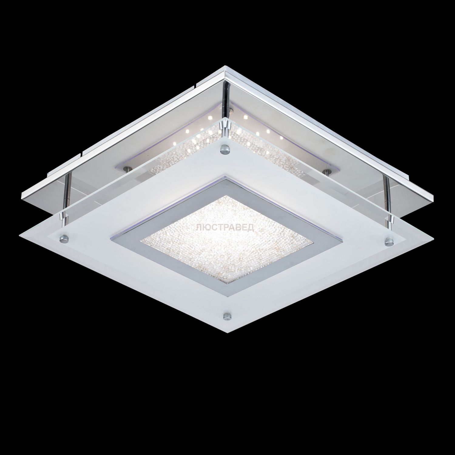 Настенно-потолочный светильник. Квадрантный каркас состоит из зеркала и матового стекла. Светодиодный модуль (LED).