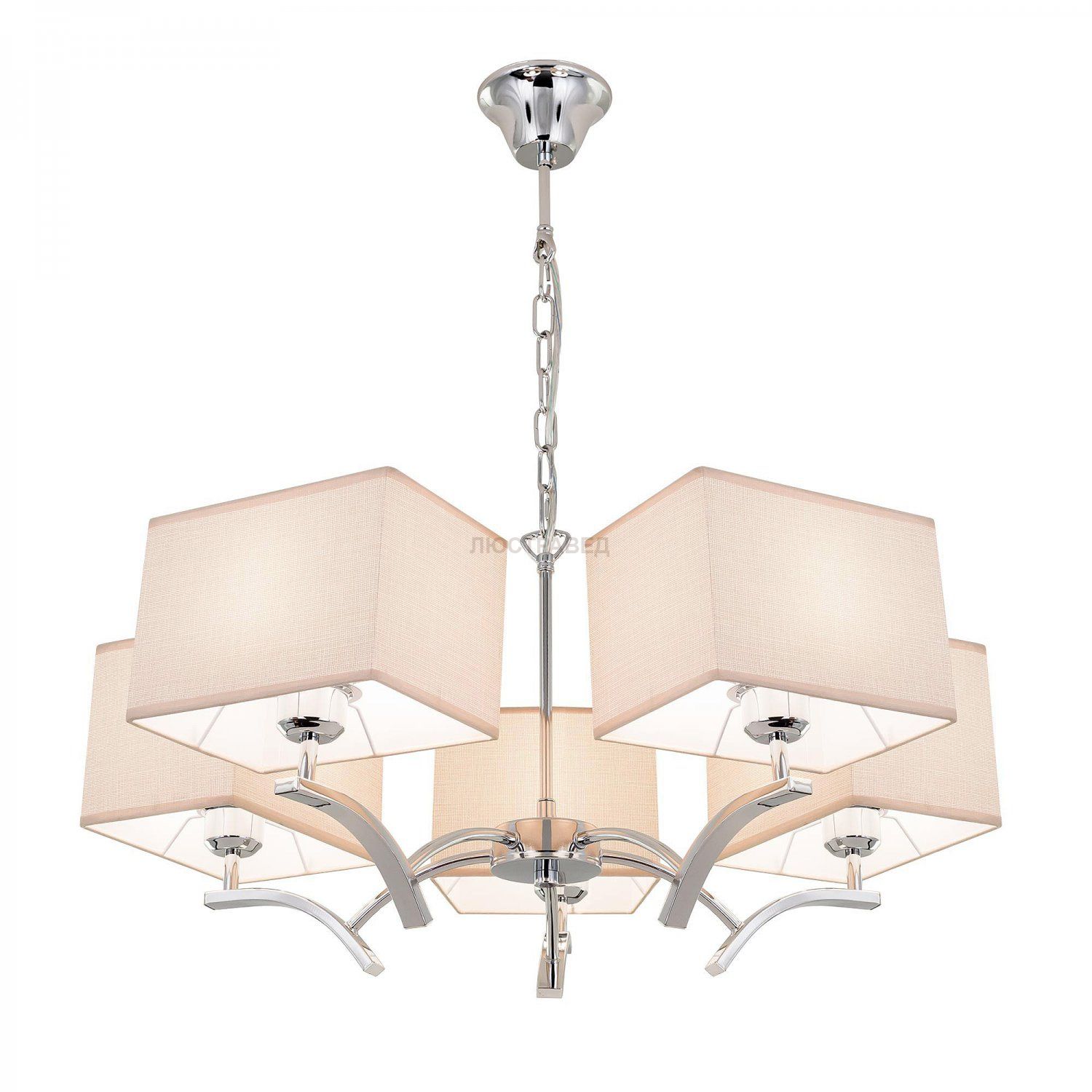 Диаметр 68см, Высота 120см, Стальная хромированная арматура с прямоугольными текстильными абажурами, Проводка коммутирована на 2-клавишный выключатель