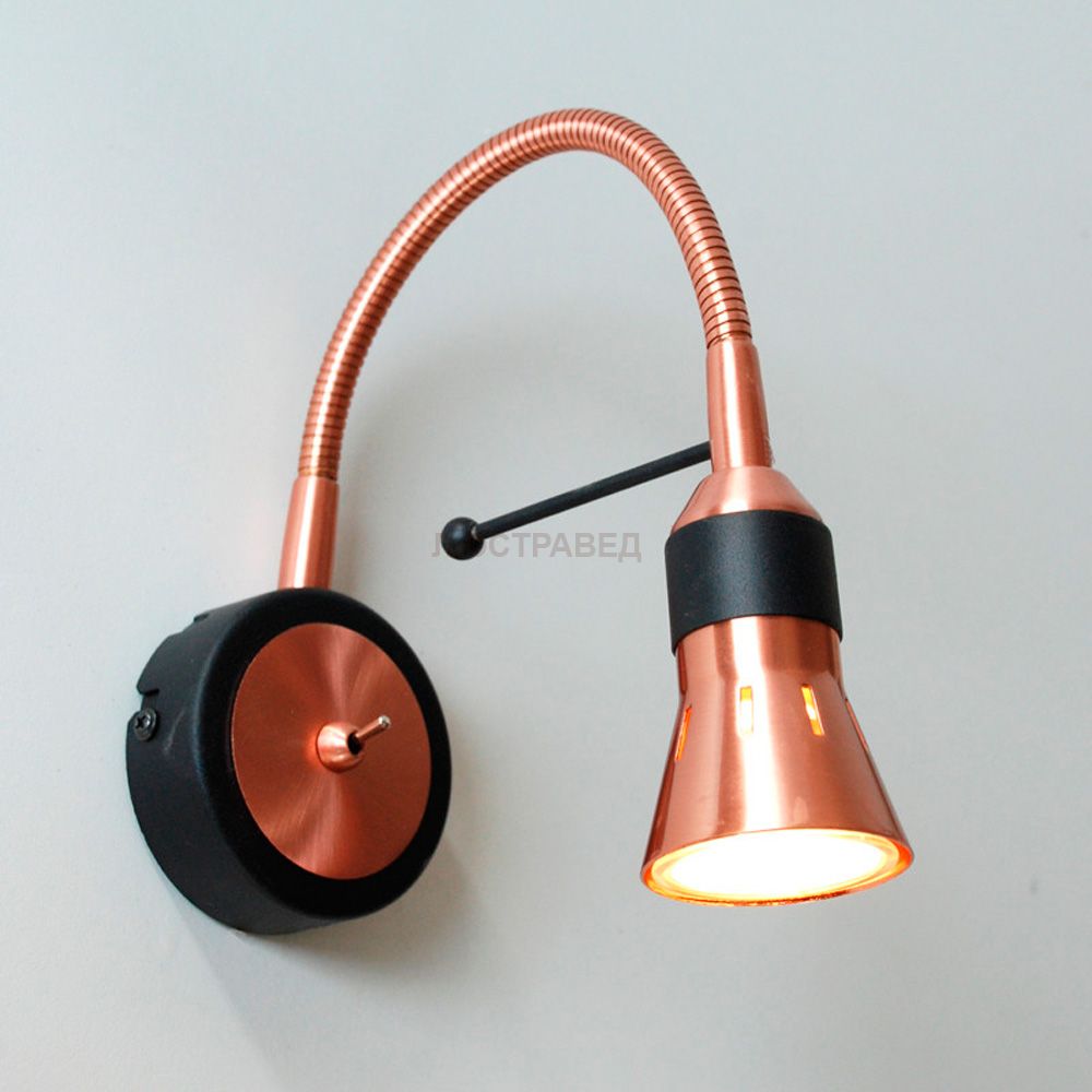 С выключателем, Лампа GU10 приложена, Высота 25см, Ширина 9см, Глубина 20см, Размер головки 9см.