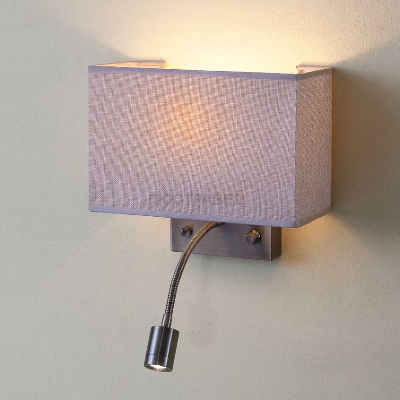 Светильник комбинирует общий и направленный свет с их раздельным включением, Основное назначение - прикроватный светильник, Диммированая лампа Е14*60Вт для общего света, Светодиодная лампа 3Вт теплого света (ЦТ=3000К) с регулировкой положения - для чтения
