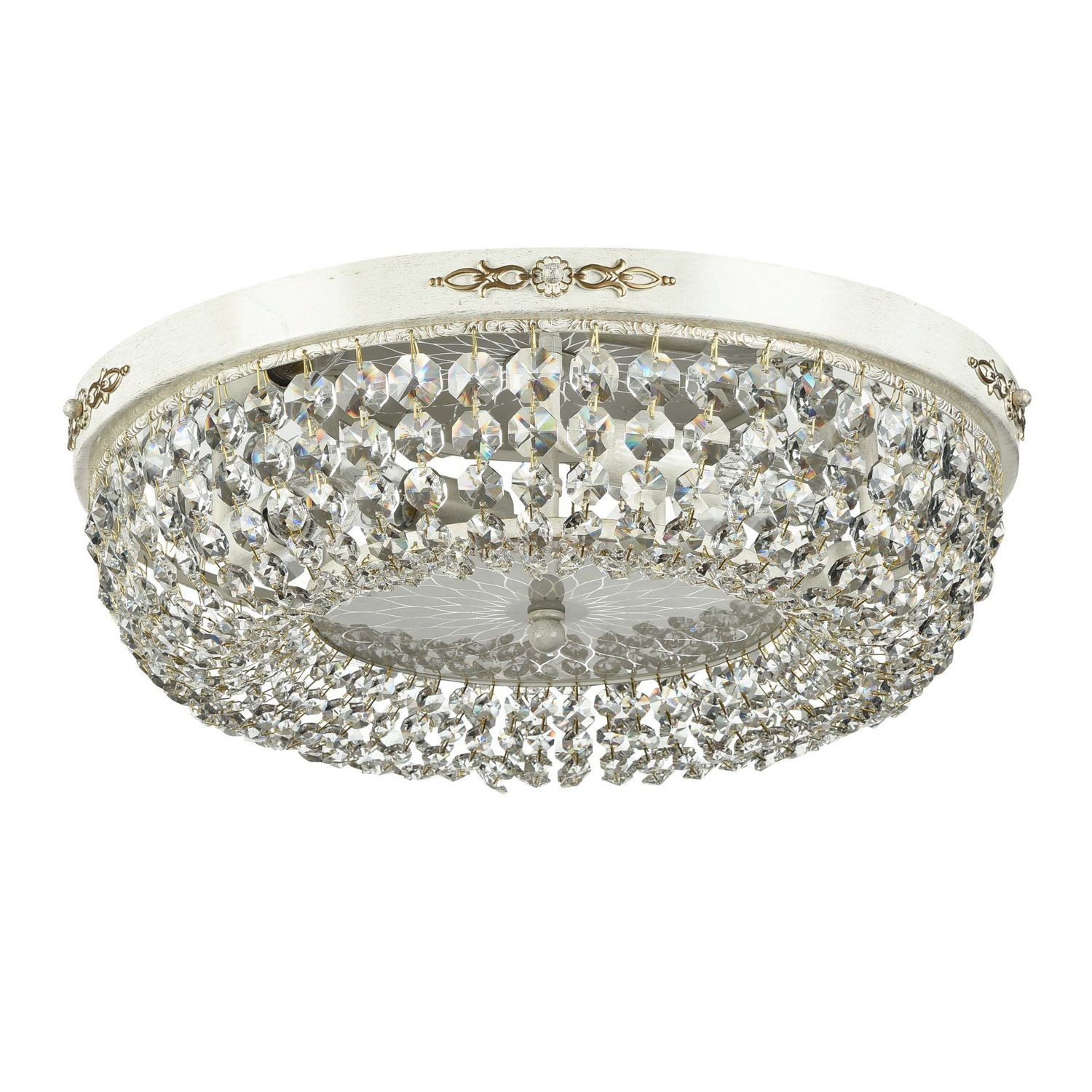 Каркас из металла. Основание декорировано стеклом с пескоструйным рисунком. Подвески из *хрусталя.