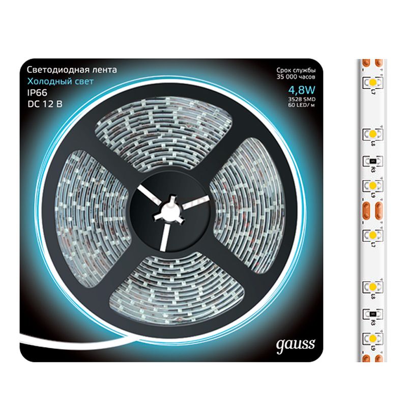 Отзывы Лента LED 2835/60-SMD 4.8W 12V DC холодный белый IP66 (блистер 5м)