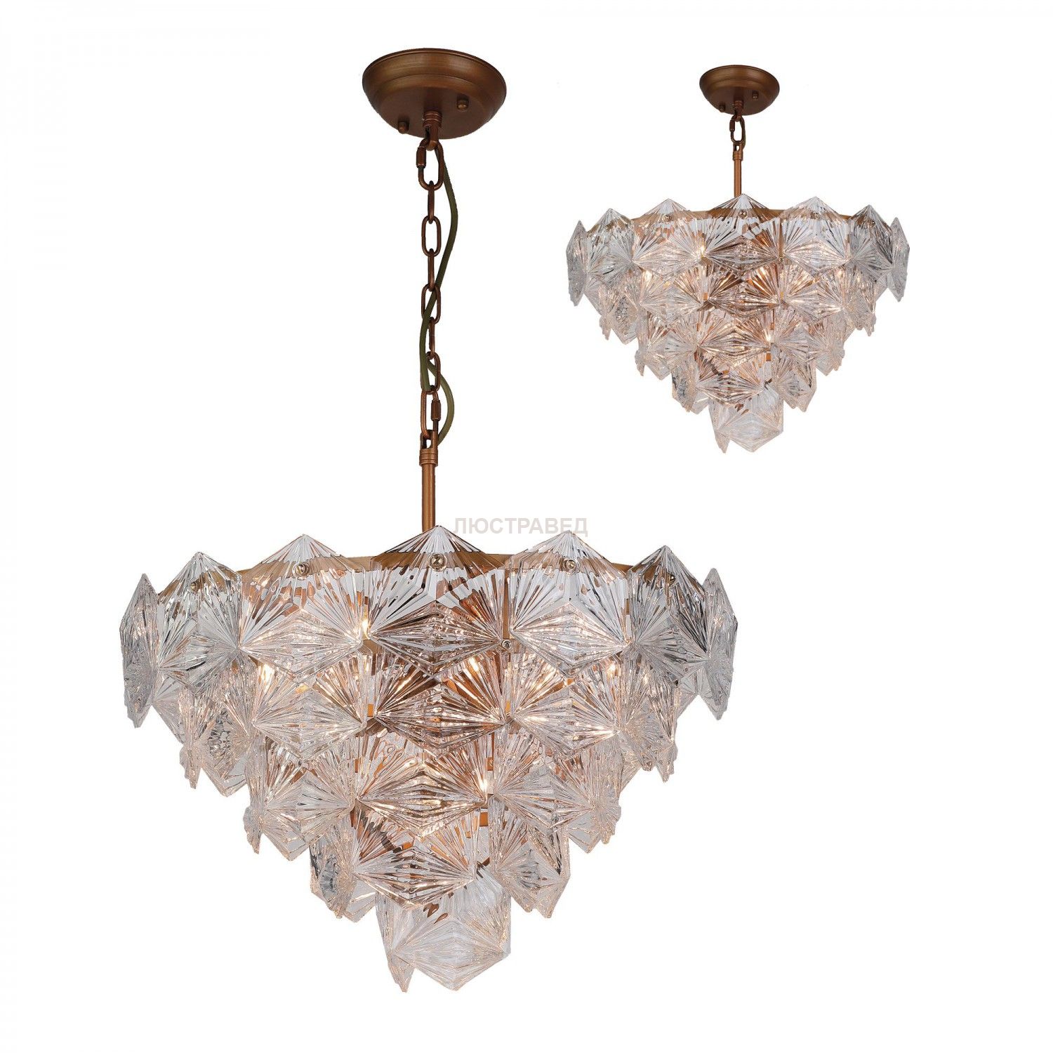 арматура окрашена в цвет античной бронзы, декоративные подвески из узорного стекла, высота светильника регулируется