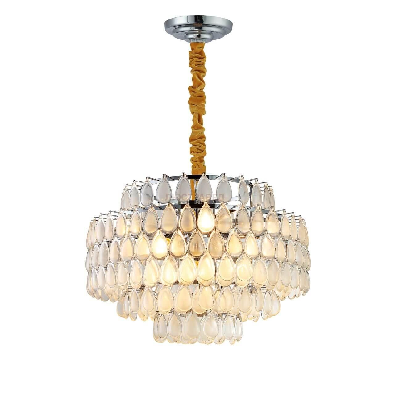 каркас покрыт гальваникой цвета хром, стеклянные подвески белого цвета