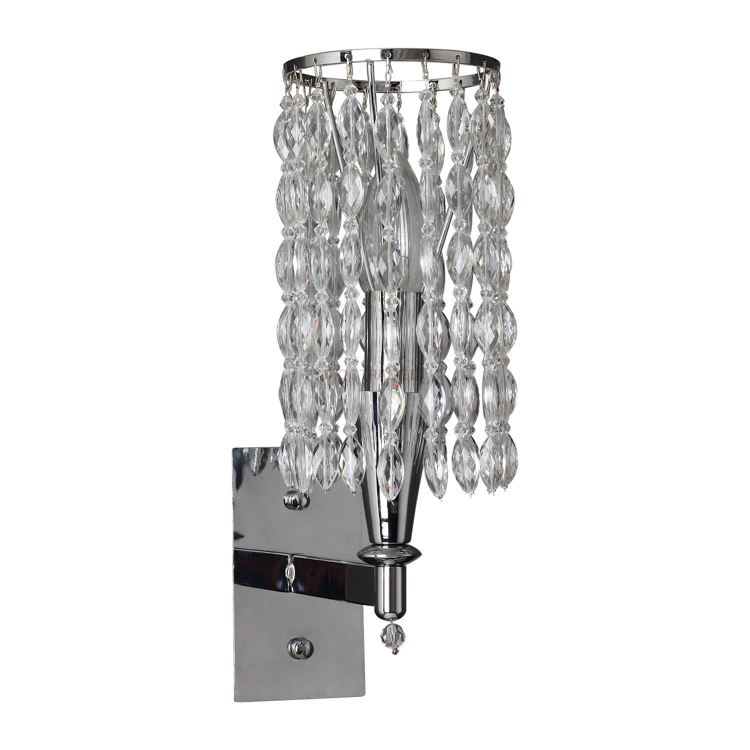 каркас цвета хром, центральный стеклянный цилиндр декорирован внутри кристаллами, подвески из хрусталя оригинальной формы