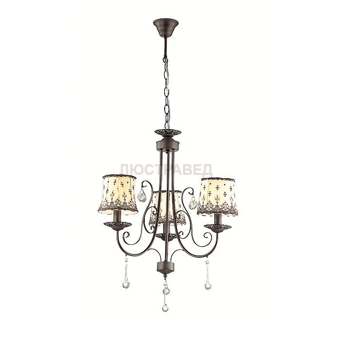 Арматура, декор: металлическая арматура украшена подвесками из хрусталя и стекла формой "капля"; плафон: тканевый абажур,с цветочным принтом, украшенный тесьмой