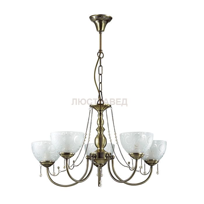 Арматура, декор: металлическая арматура украшена цепочками сбусинами под жемчуг; плафон: пескоструйное стекло