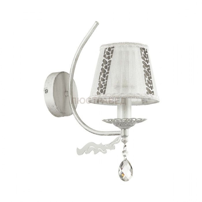 Арматура, декор: металл, хрусталь; абажур: ткань
