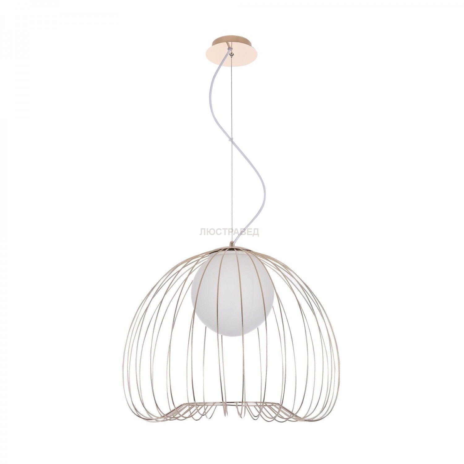 Каркас из металлических прутьев. Декоративный плафон из белого матового стекла.