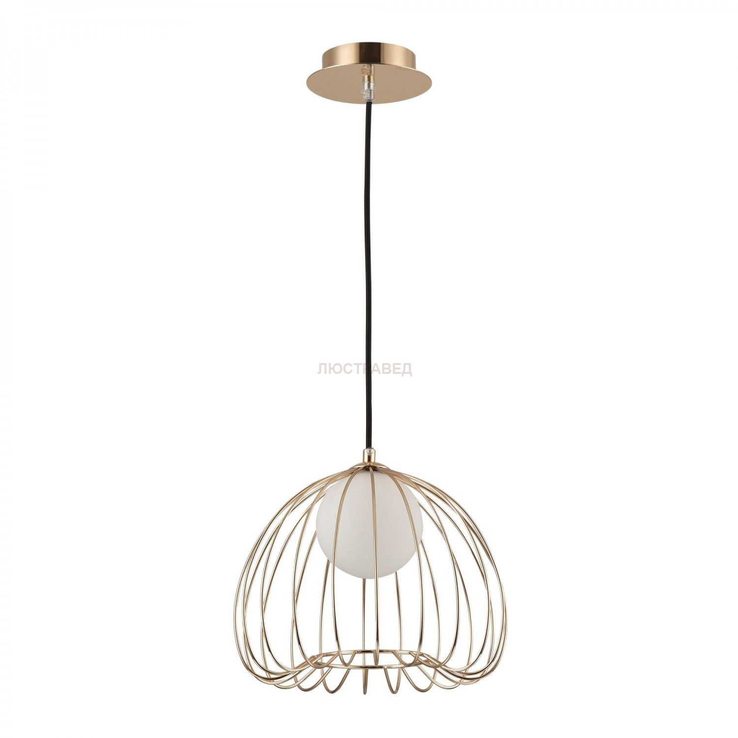 Каркас из металлических прутьев. Декоративный плафон из белого матового стекла.