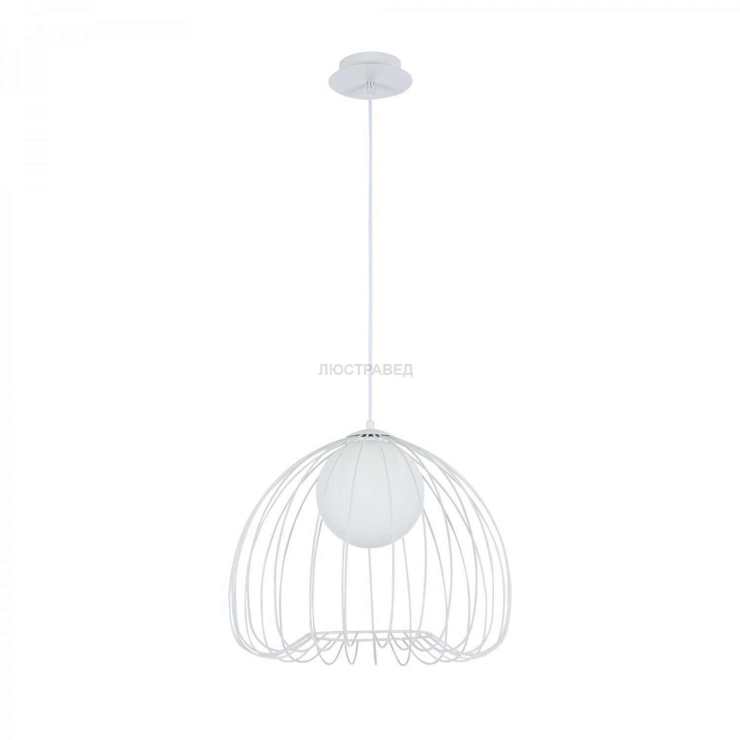 Каркас из металлических прутьев. Декоративный плафон из белого матового стекла.