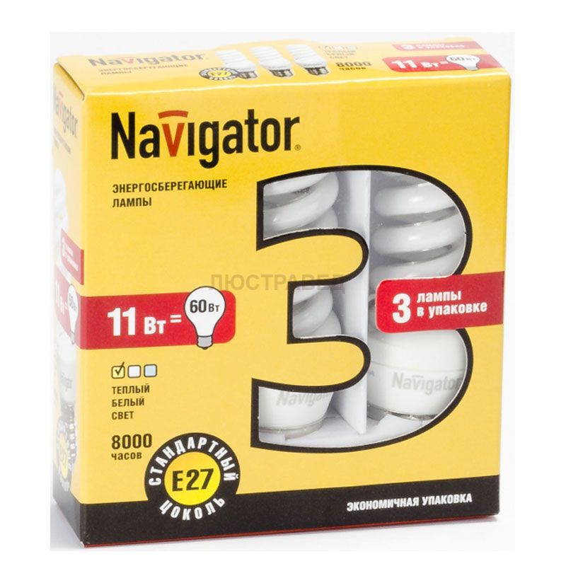 Лампа энергосберегающая Navigator 94 422 NCL8-SF-11-840-E27/3PACK